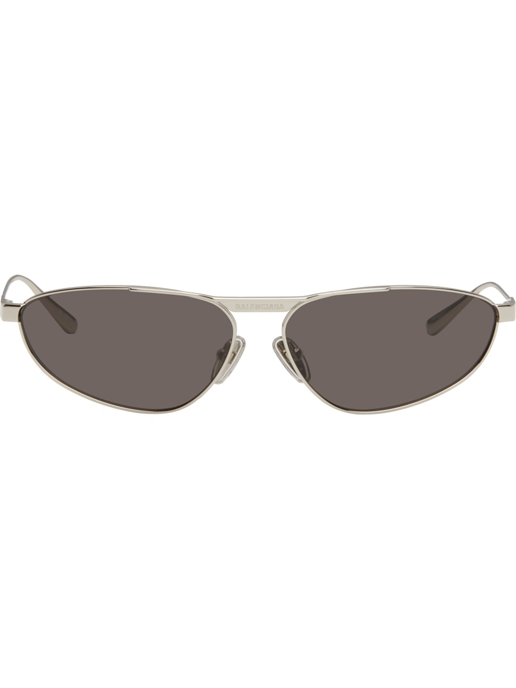 Oval metal-frame sunglasses in silver tone. · Gray lenses · Logo engraved at face · Adjustable rubber nose pads · Includes case · Size: 66.14 140 Supplier color: Silver Metal. Made in Japan 252342F005000