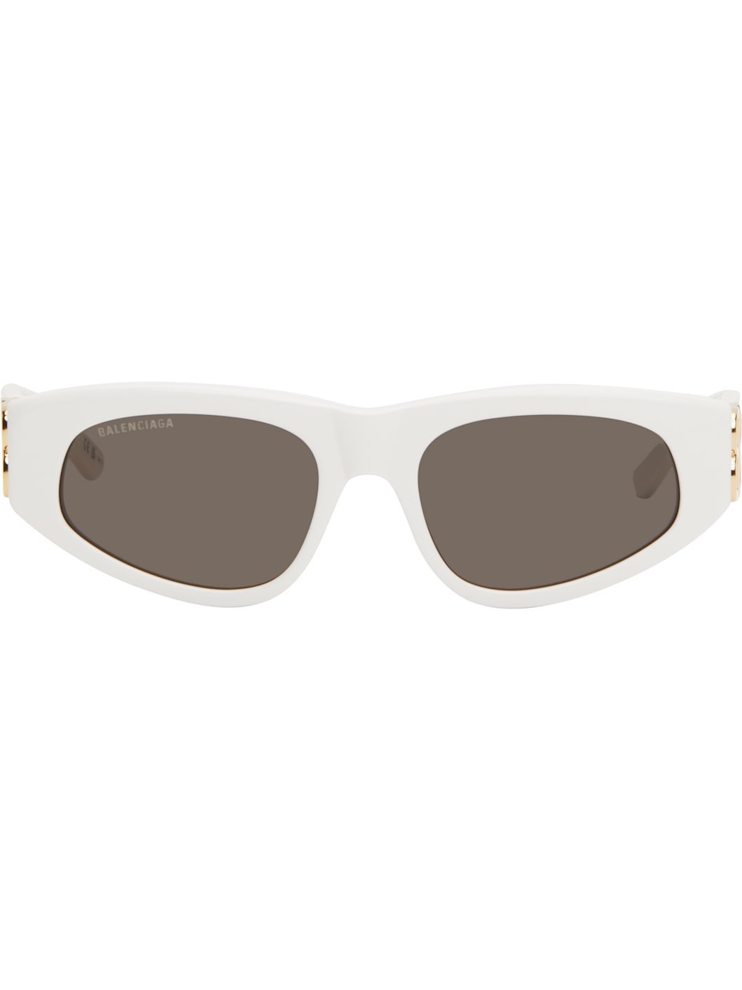 Cat-eye acetate-frame sunglasses in white. · Gray CR-39 lenses · 100% UVA/UVB protection, category 3 · Logo etched at lens · Integrated nose pads · Logo hardware at hinges · Includes case · Size: 53.19 135 Supplier color: White Acetate. Made in Italy 252342F005028