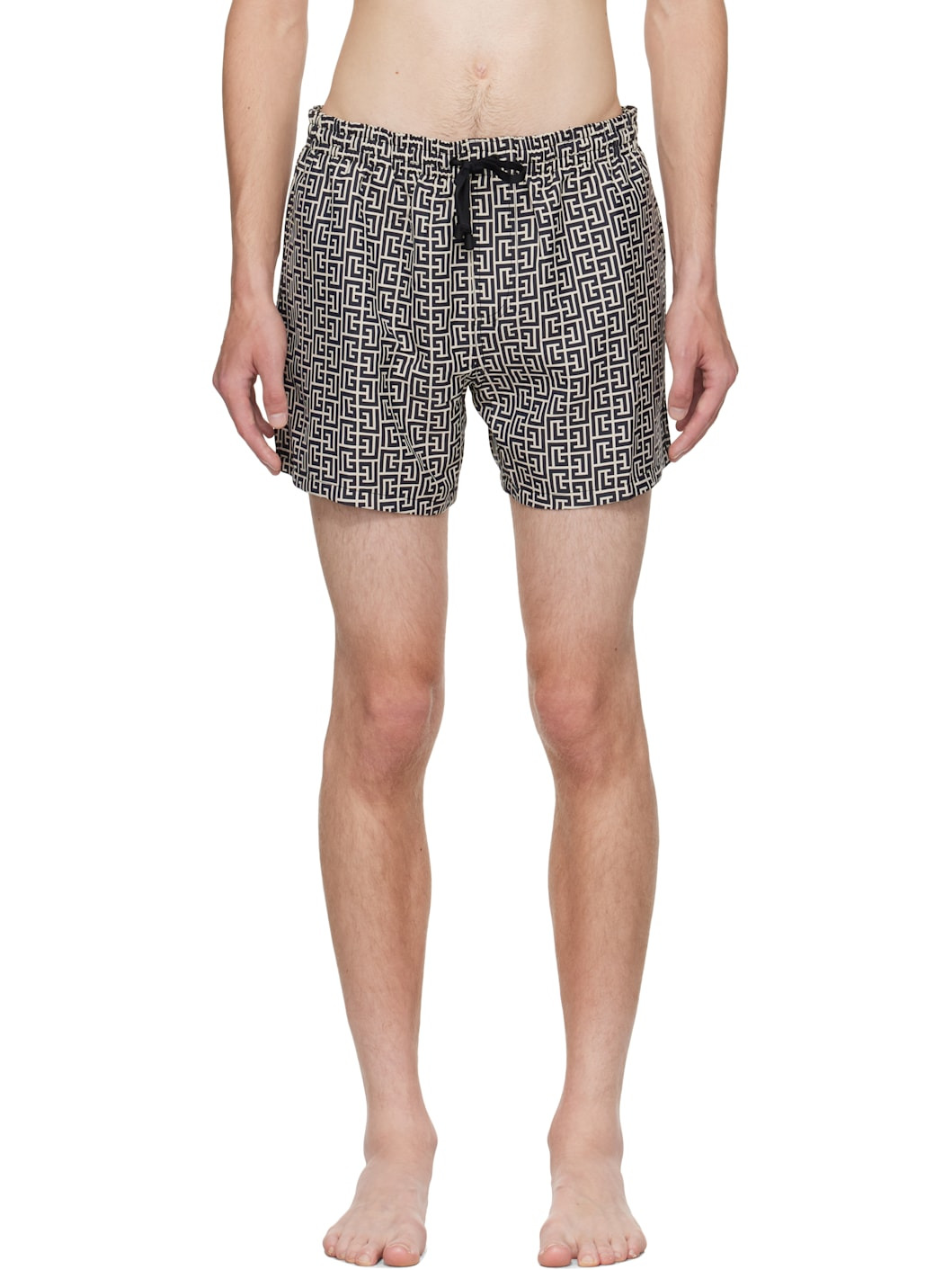 Beige & Black Monogram Swim Shorts