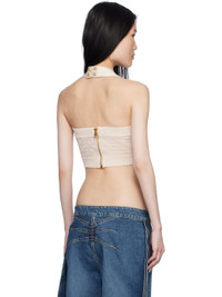 Knit viscose-blend tank top. Jacquard logo pattern and metallic thread detailing throughout. · Press-stud halter strap · Rib-knit straight neck and hem · Zip closure at back · Logo-engraved gold-tone hardware Supplier color: Beige 78% viscose, 17% metallic polyester, 5% polyester. Made in France 251251F111011