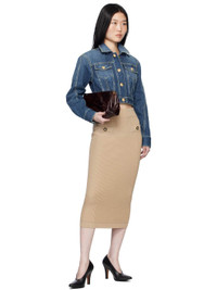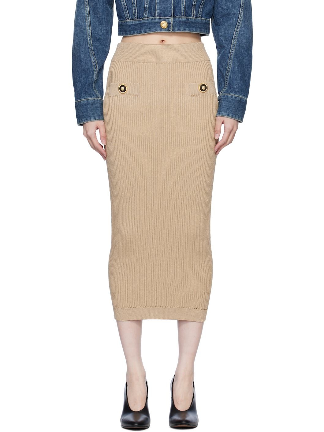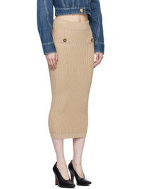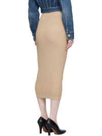 Rib-knit viscose-blend midi skirt. · High-rise · Elasticized waistband · Mock pockets at front · Graphic-engraved gold-tone hardware Supplier color: Beige 84% viscose, 16% polyester. Made in Italy 251251F092001