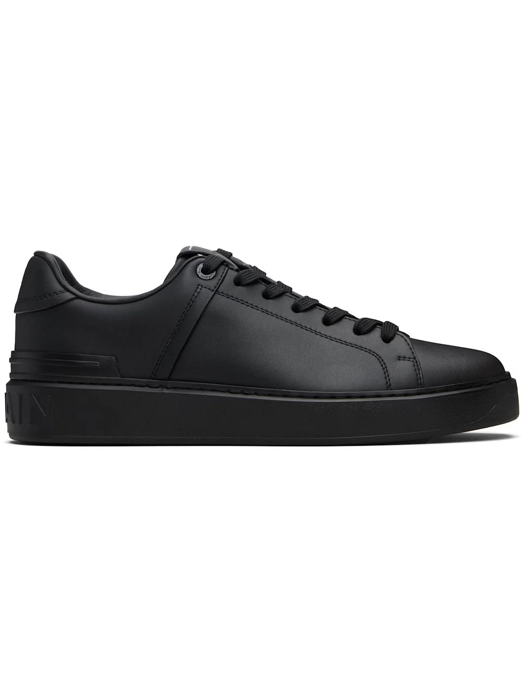 Low-top buffed calfskin sneakers. · Lace-up closure · Logo patch at padded tongue · Padded collar · Logo stamp at outer side · Logo embossed at heel tab and counter · Treaded rubber sole Supplier color: Black Upper: calfskin. Sole: rubber. Made in Italy 252251M237008