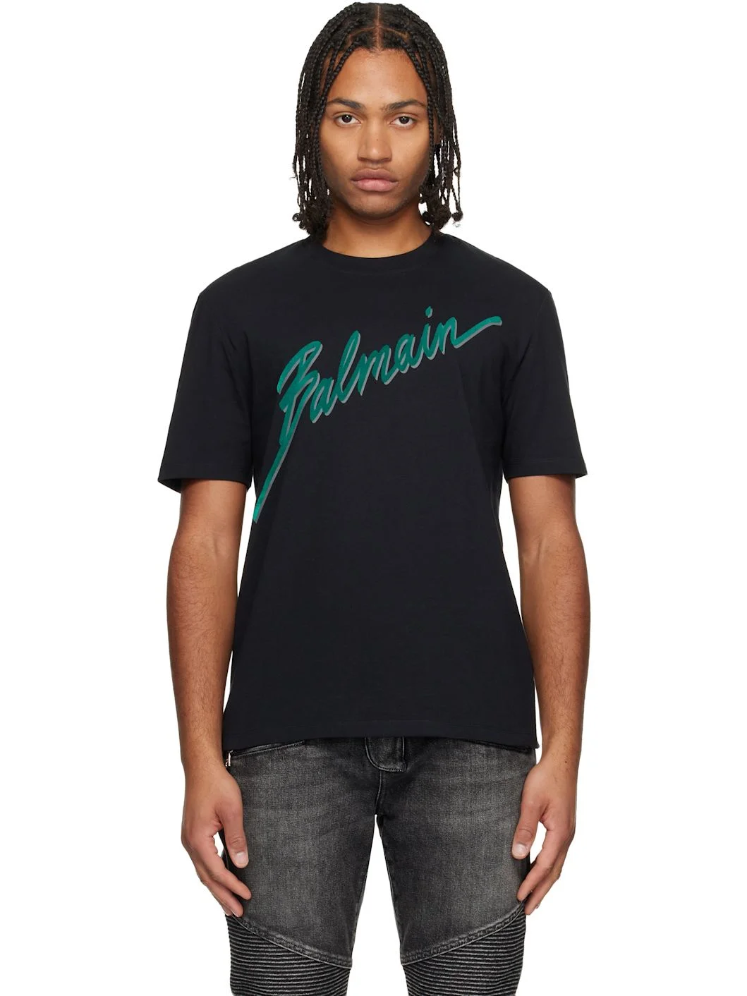 Black 'Balmain' Lettre Flocked T-shirt