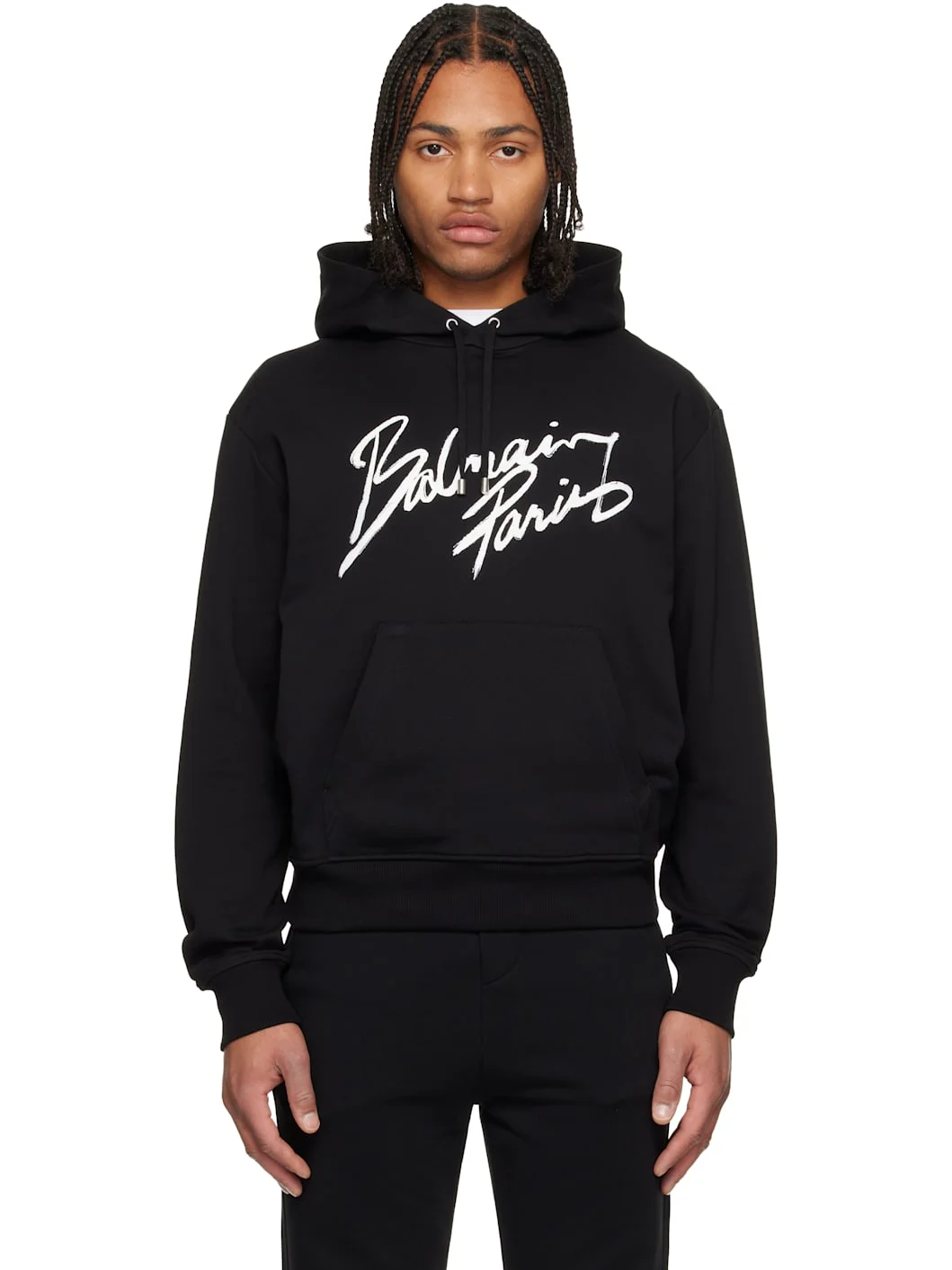 Cotton French terry hoodie. · Drawstring at hood · Logo printed at chest · Kangaroo pocket · Rib-knit hem and cuffs Supplier color: Black/White Body: 100% cotton. Trim: 95% cotton, 5% elastane. Made in Portugal 261251M202008