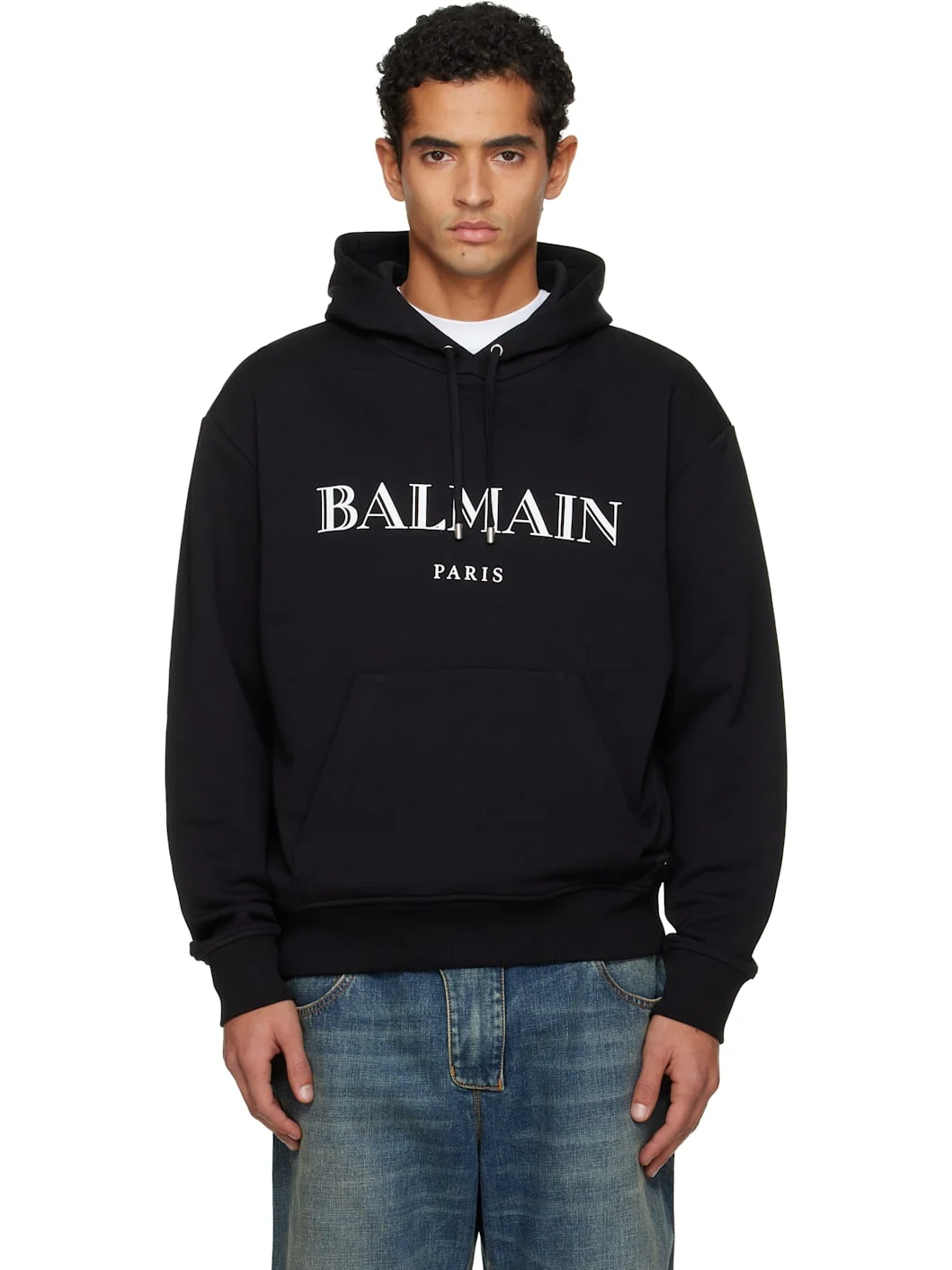 French terry hoodie. · Drawstring at hood · Logo printed at chest · Kangaroo pocket at front · Rib-knit hem and cuffs · Dropped shoulders Supplier color: Black/White 100% cotton. Made in Portugal 261251M202006