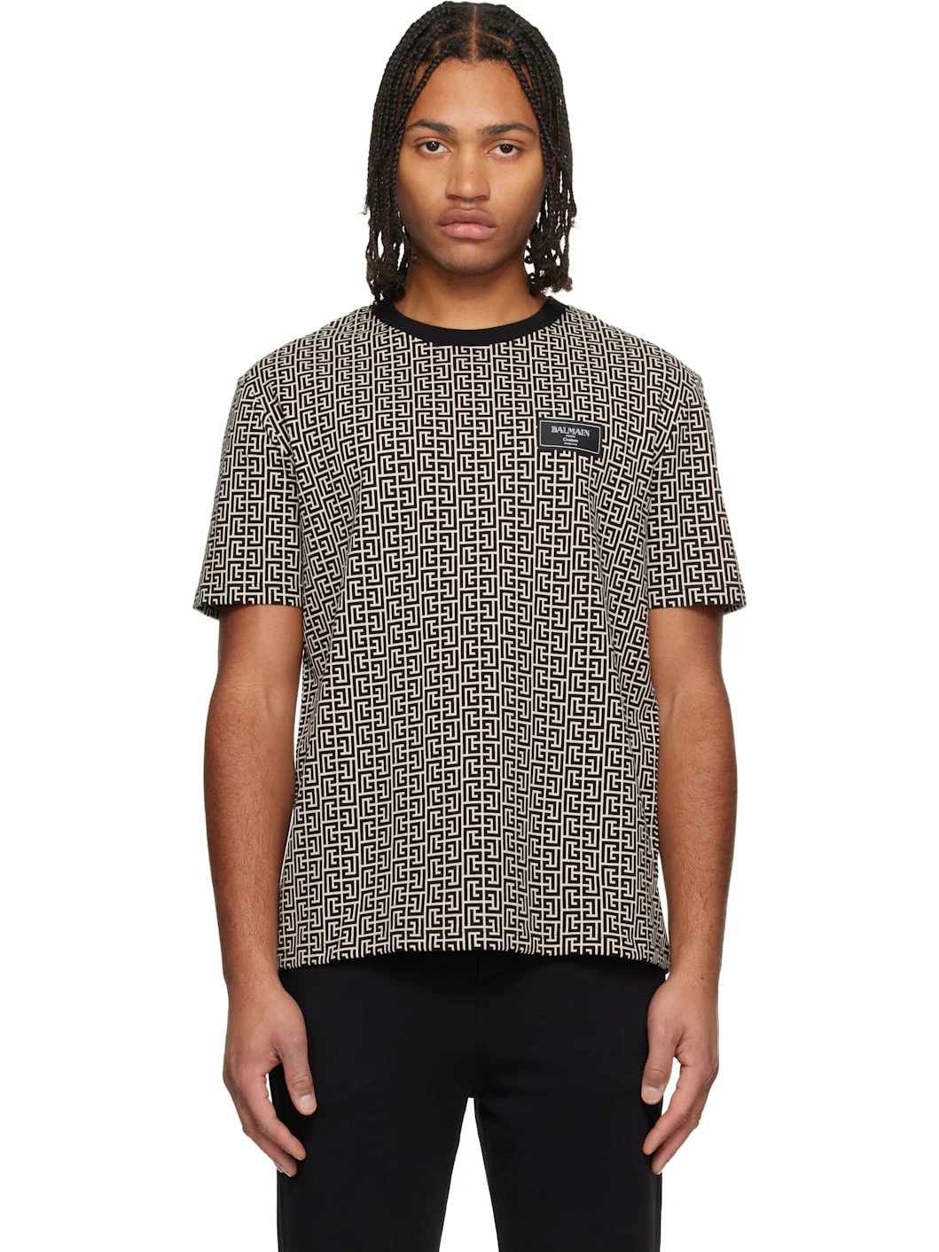 Black & Beige Monogrammed 'Balmain Couture' Label T-shirt