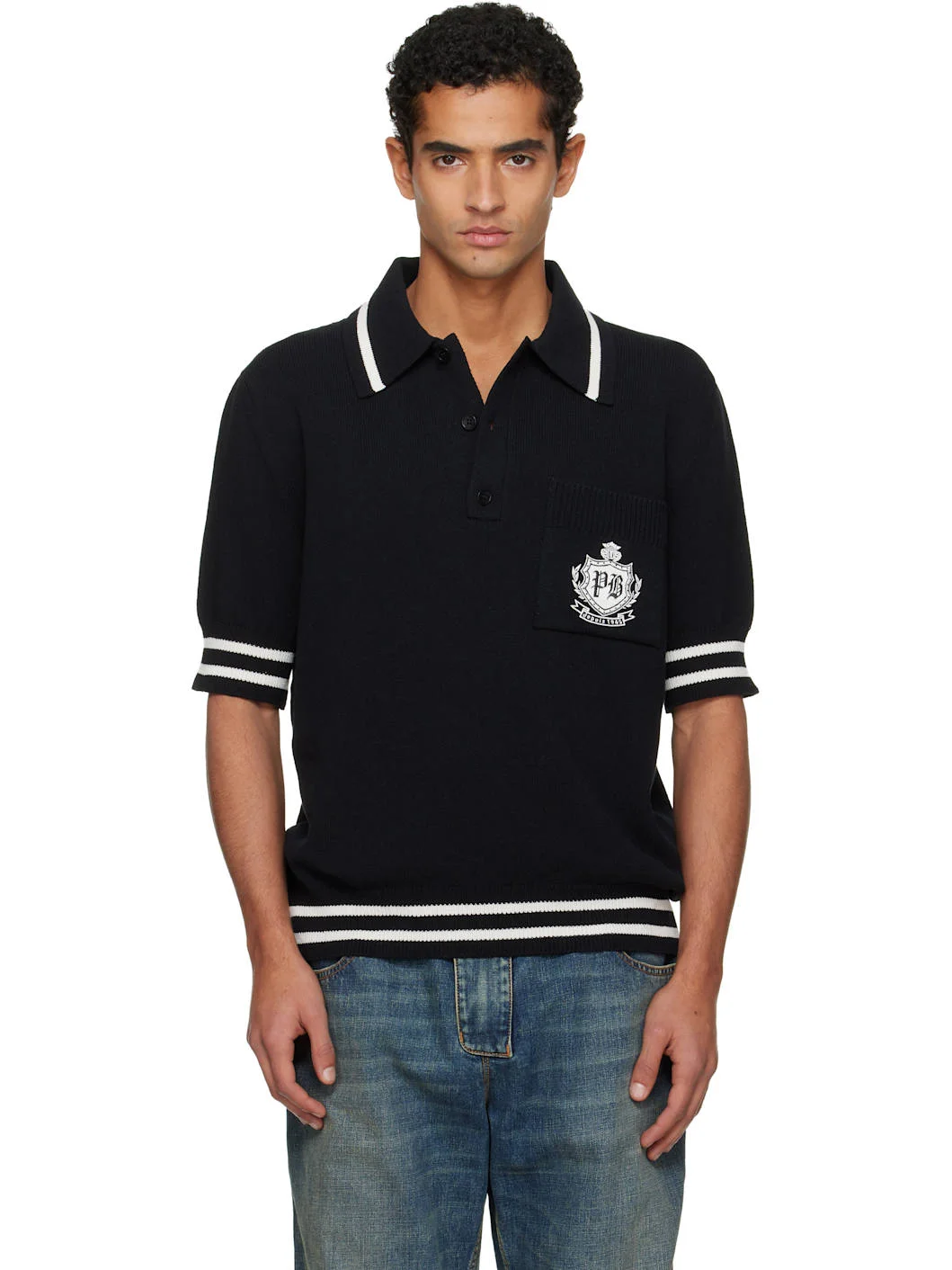 Black College Emblem Embroidery Knit Polo