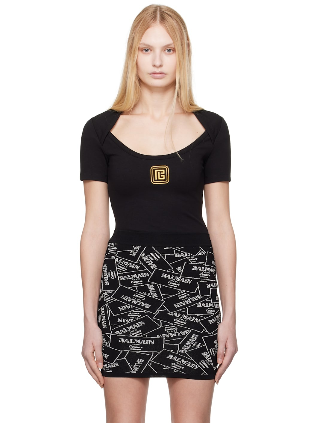 Stretch cotton-blend jersey T-shirt. · Scoop neck · Logo embroidered at front Supplier color: Noir 39% cotton, 39% modal, 12% elastane, 10% polyamide. Made in Portugal 251251F110007