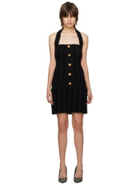 Hemp and viscose-blend tweed dress. Pleats throughout. · Square neck · Button detailing at front · Press-stud fastening at halter strap · Zip closure at back · Unlined · Logo-engraved gold-tone hardware Supplier color: Noir 32% hemp, 30% viscose, 18% polyamide, 9% cotton, 6% polyester, 5% linen. Made in France 231251F052045