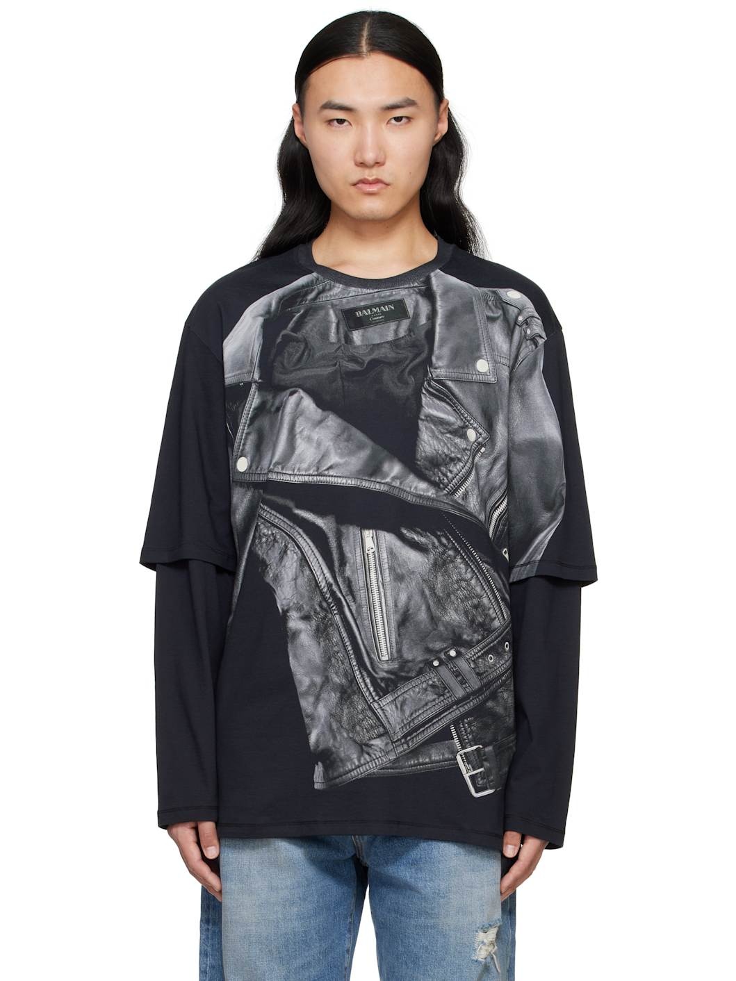 Cotton jersey T-shirt. Graphic printed throughout. · Rib-knit crewneck · Dropped shoulders · Layered sleeves · Logo patch at back collar Supplier color: Noir 100% cotton. Made in Bulgaria 251251M213000
