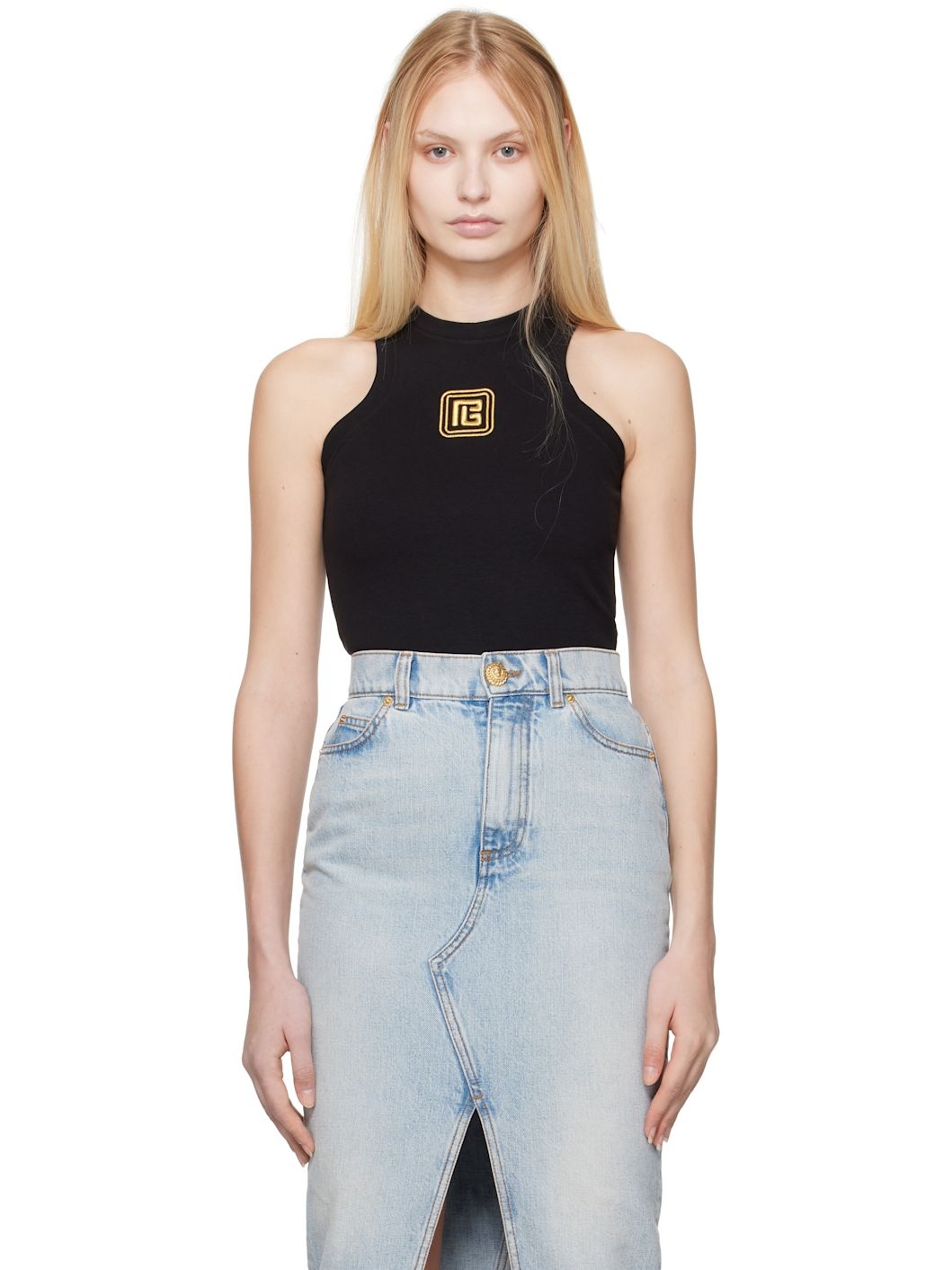 Black Retro 'PB' Embroidery Tank Top