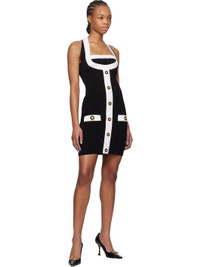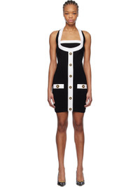 Black & White Two-Tone Halterneck Knit Minidress