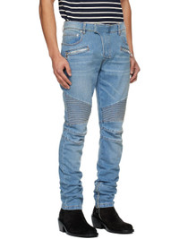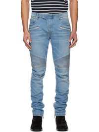 Blue Slim-Fit Biker Jeans