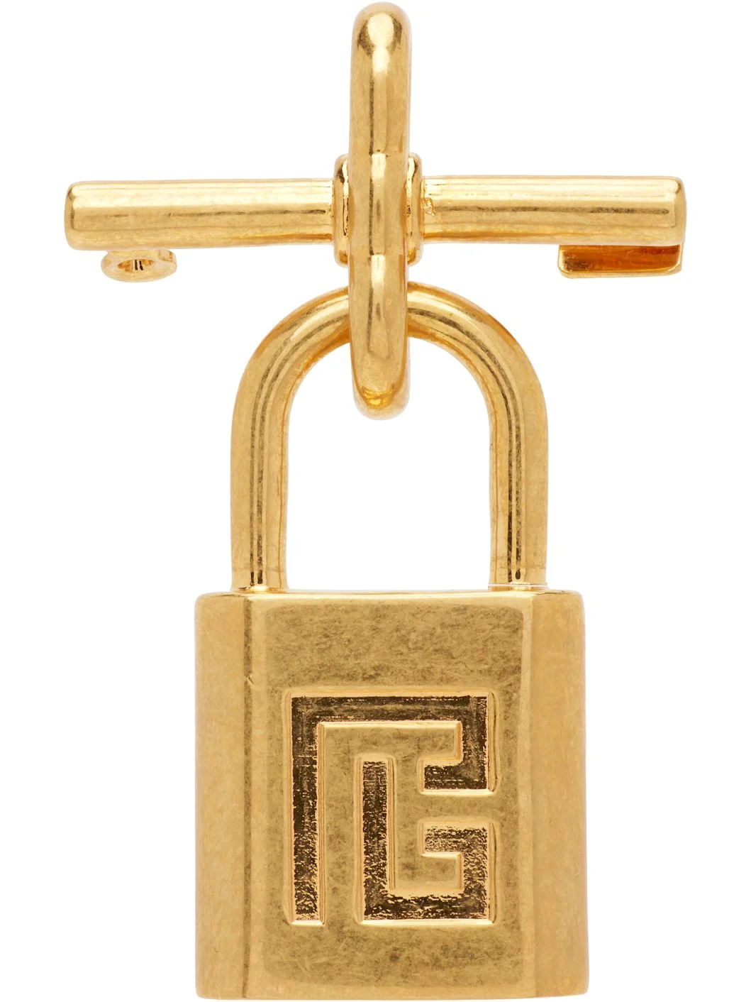 Brooch in gold-tone brass. · Logo-engraved padlock charm at drop · Safety-pin fastening · H2" x W1" Supplier color: Gold Brass. Made in Italy 252251F021001