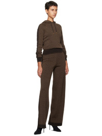 Knit merino wool hoodie. Jacquard logo graphic pattern throughout. · Drawstring at hood · Rib knit hem and cuffs · Rib knit trim at raglan sleeves · Logo-engraved gold-tone hardware Supplier color: Marron/Marron Body: 100% merino wool. Trim: 98% merino wool, 2% elastane. Made in France 241251F097001