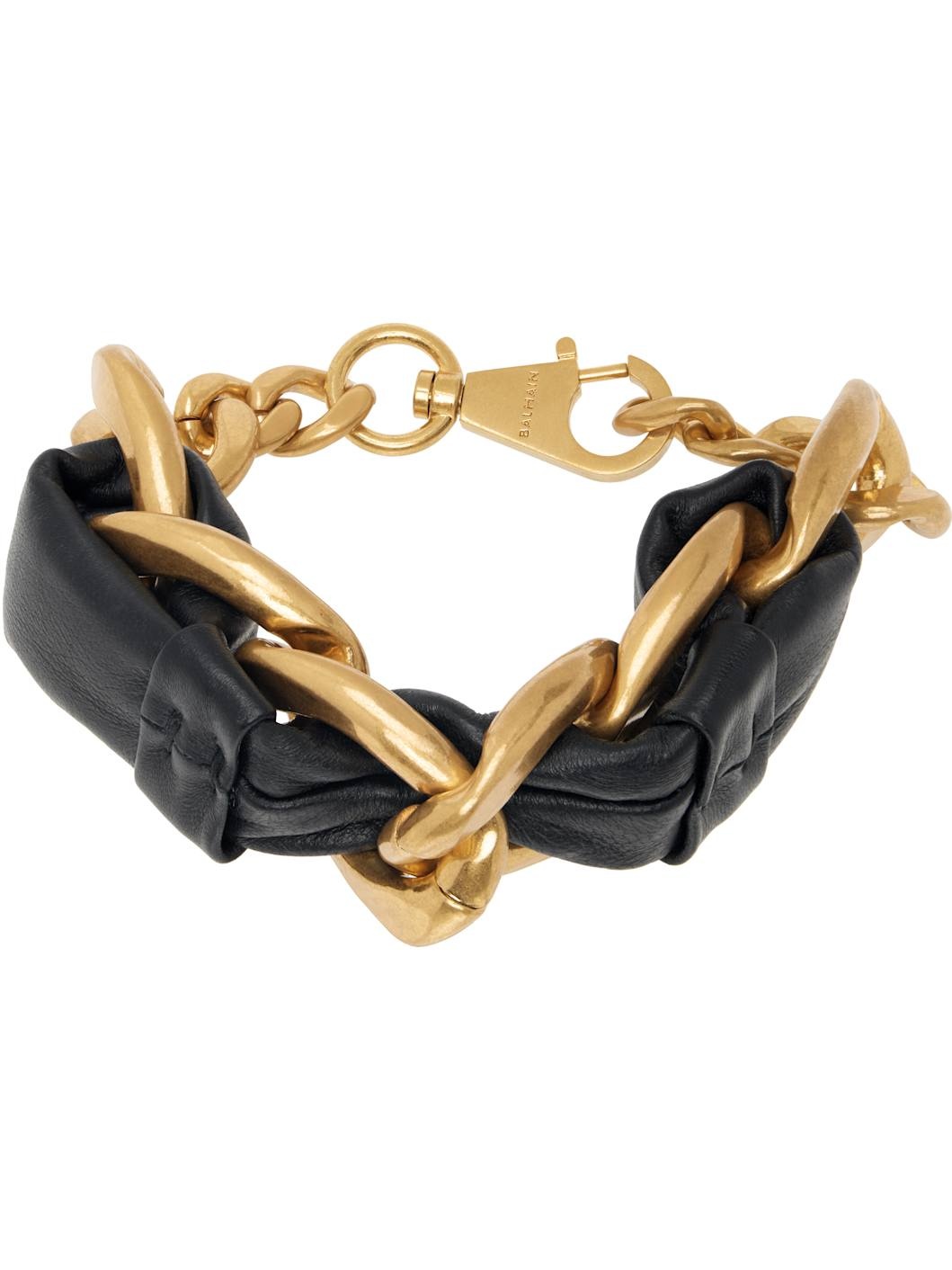 Curb chain bracelet in gold-tone brass. · Interlaced lambskin trim · Adjustable lobster-clasp fastening · L10" Supplier color: Black Brass, lambskin. Made in Italy 251251F020001