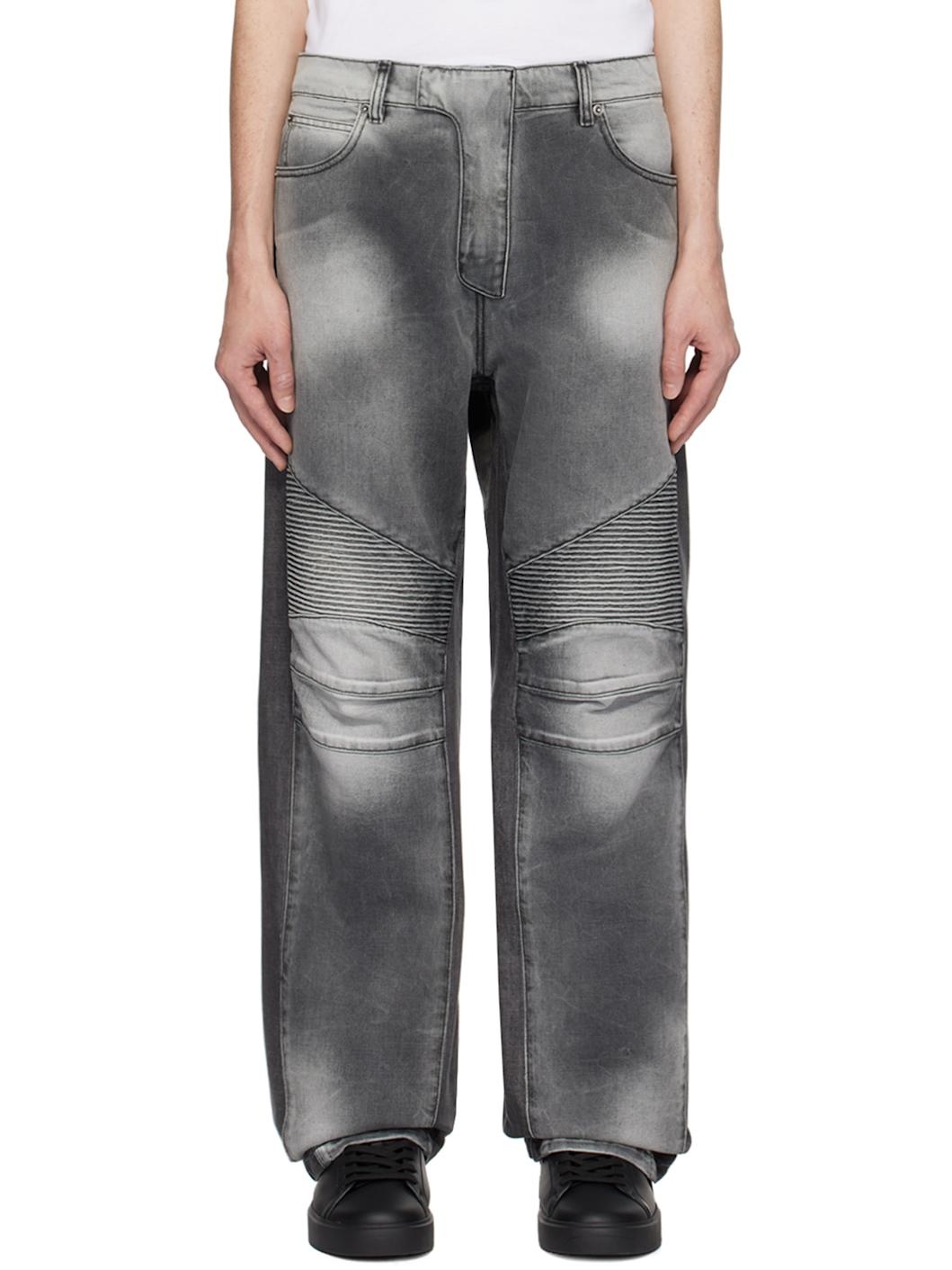 Non-stretch denim jeans. Fading throughout. · Paneled construction · Belt loops · Five-pocket styling · Zip-fly · Logo patch at back waistband · Ribbed panel at knees · Zip pockets at back · Logo-engraved silver-tone hardware Supplier color: Grey Body: 100% cotton. Lining: 65% polyester, 35% cotton. Made in Italy 242251M186012