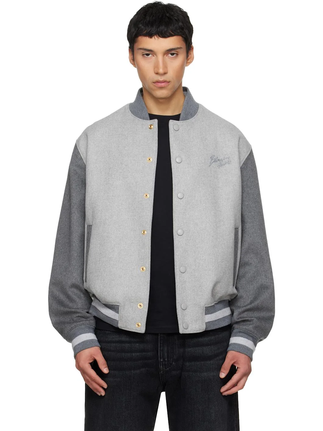 Gray Wool & Cashmere Varsity Bomber Jacket