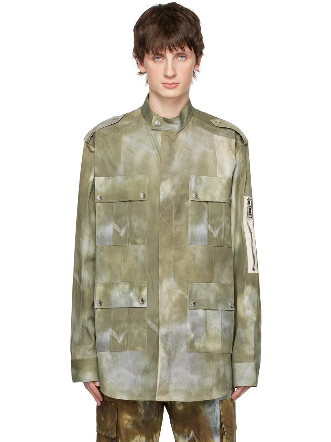 Cotton twill jacket. Tie-dye pattern printed throughout. · Band collar · Concealed zip closure · Flap pockets · Shirttail hem · Epaulets · Zip detailing at sleeve · Press-stud barrel cuffs · Unlined · Logo-engraved silver-tone hardware Supplier color: Multi/Kaki