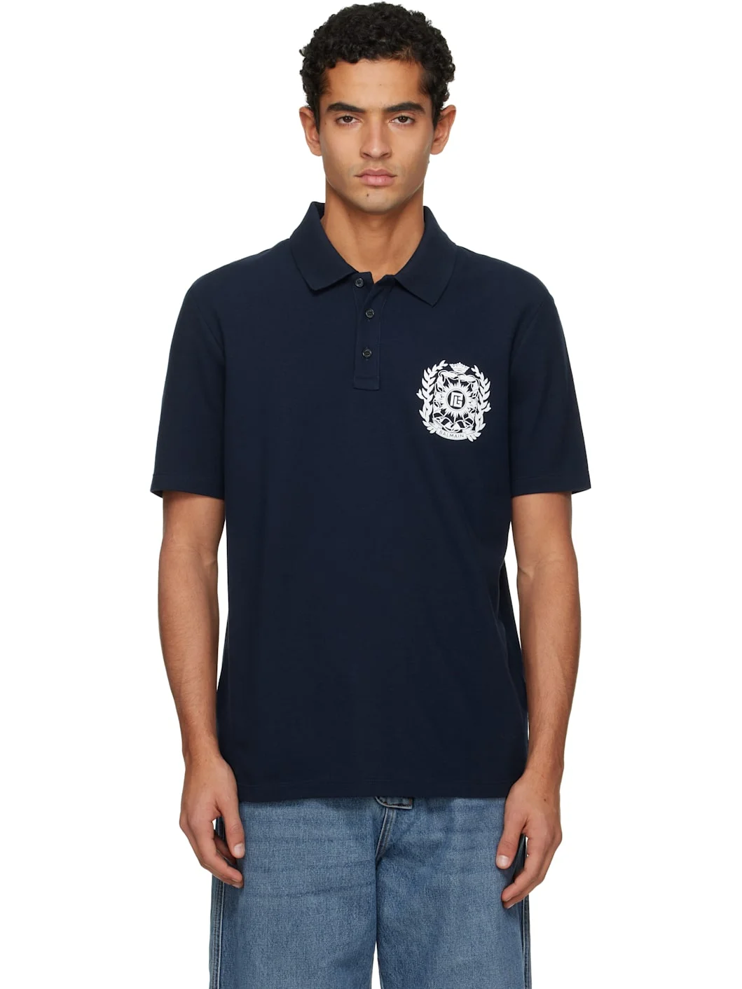 Navy Écusson Print Cotton Polo