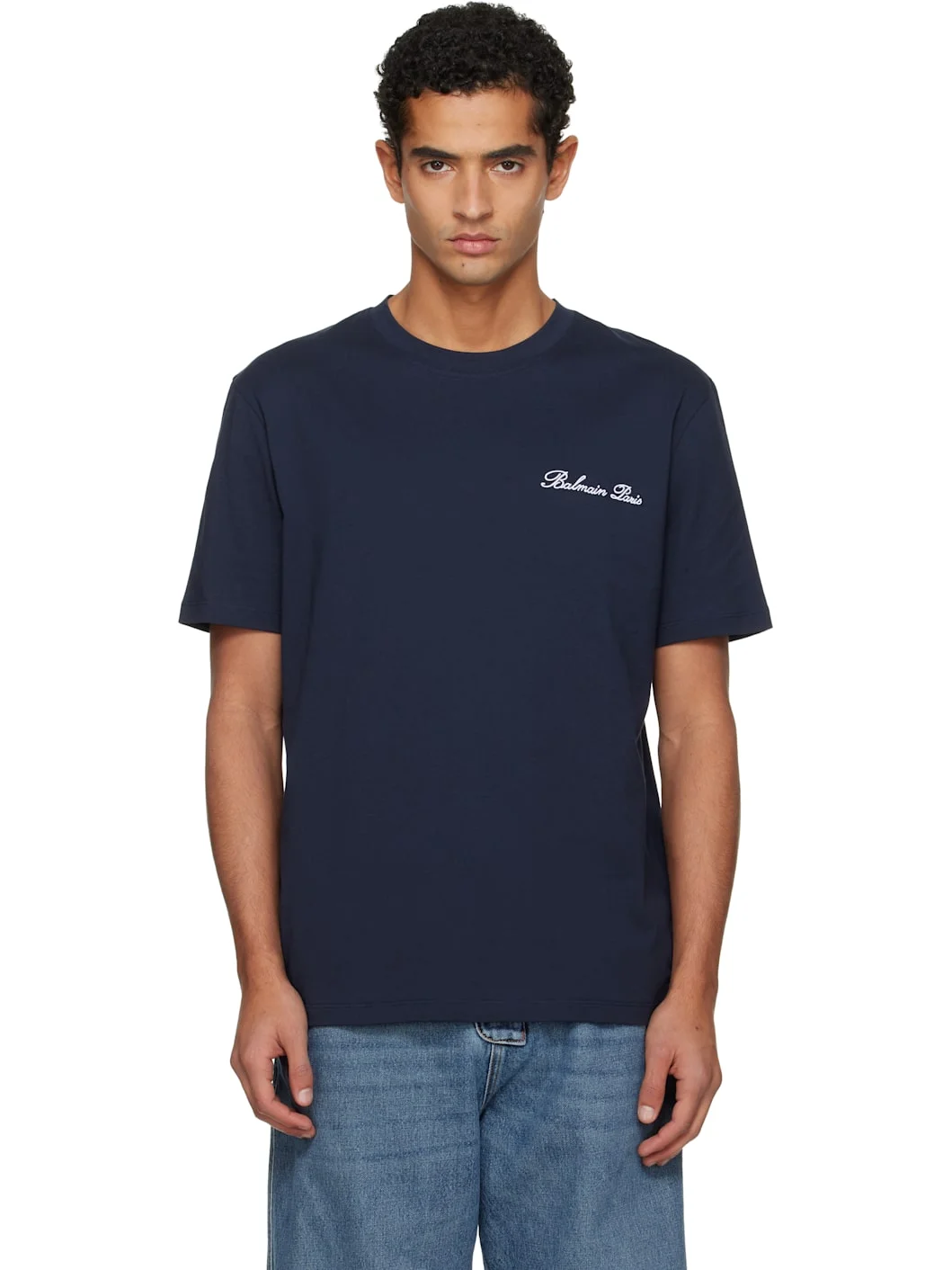 Cotton jersey T-shirt. · Rib-knit crewneck · Logo embroidered at chest and back Supplier color: Marine/Blanc 100% cotton. Made in Portugal 252251M213008