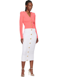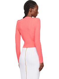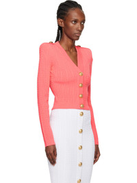 Cable-knit viscose-blend cardigan. · Rib-knit trim throughout · V-neck · Press-stud closure · Cropped hem · Epaulets · Engraved gold-tone hardware Supplier color: Pink 83% viscose, 17% polyester. Made in France 252251F095000
