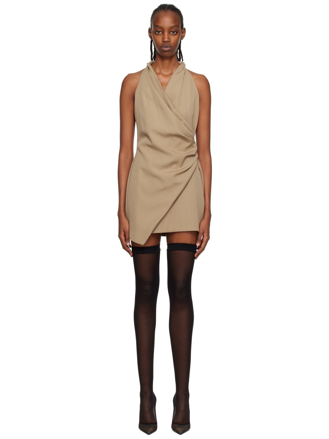 Wool delaine dress. Draping throughout. · Wrap construction · V-neck · Zip closure at back · Full viscose-blend twill lining Supplier color: Sable Body: 100% wool. Lining: 52% viscose, 48% cotton. Made in Madagascar 231251F052040