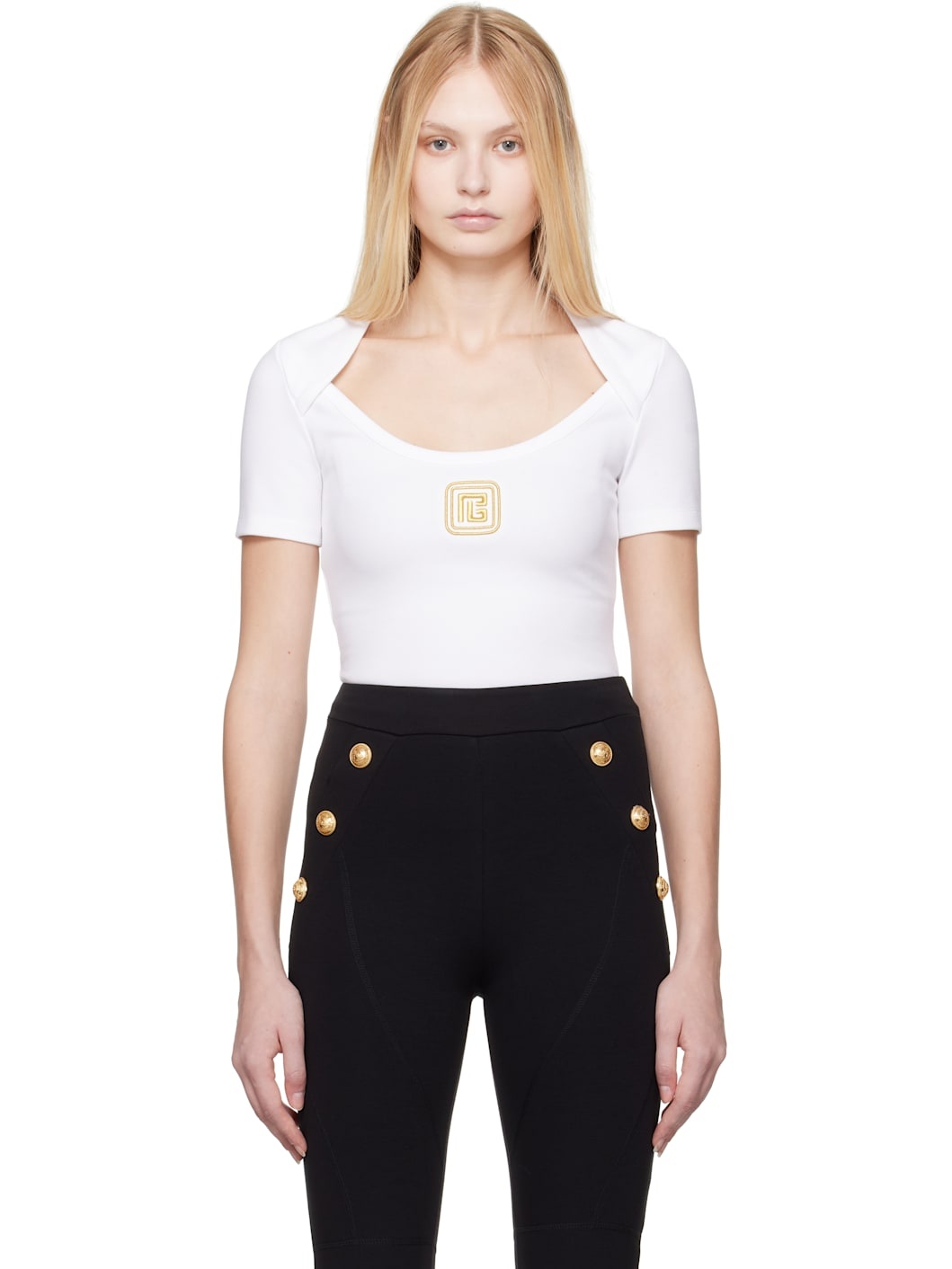 Stretch cotton-blend jersey T-shirt. · Scoop neck · Logo embroidered at front Supplier color: Gad blanc 39% cotton, 39% modal, 12% elastane, 10% polyamide. Made in Portugal 251251F110006