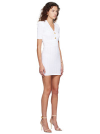 Viscose-blend pointelle knit and rib knit dress. · V-neck · Two-button placket · Padded shoulders · Zip closure at back · Logo-engraved gold-tone hardware Supplier color: Blanc 83% viscose, 17% polyamide. Made in Italy 231251F052057