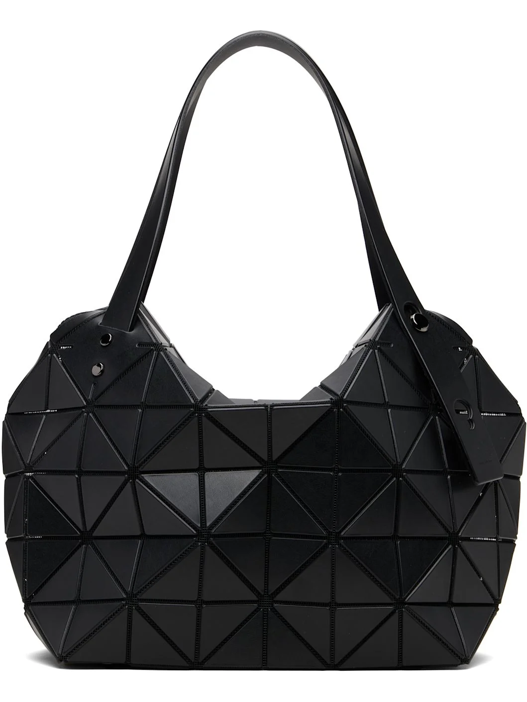 Mesh top handle bag. · Signature triangular vinyl appliques throughout · Adjustable carry handles · Bumper studs at base · Two-way zip closure · Patch pocket at interior · H9.5" x W15" x D6.5" Supplier color: Matte Black Textile, polyvinyl chloride. Made in Japan 261730F046019