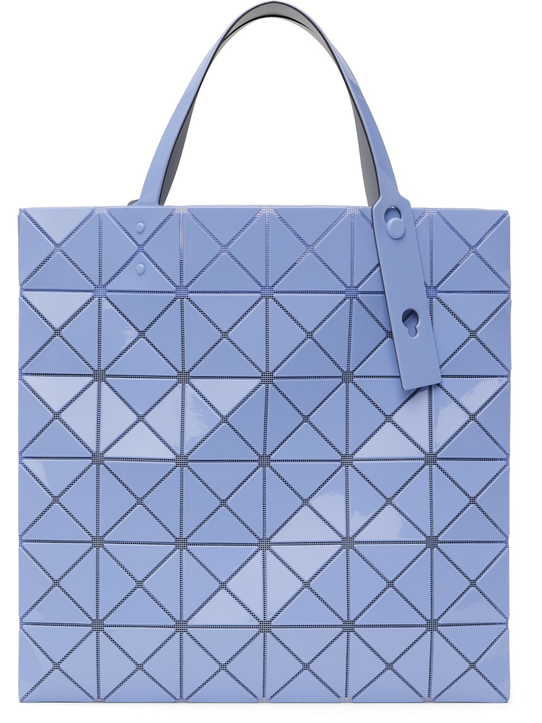 Sheer mesh tote in blue. · Triangular glossy polymer appliques throughout · Twin adjustable faux-leather carry handles · Zip pocket at interior · Unlined · H13.5" x W13.5" Supplier color: Light blue Textile, polyvinyl chloride. Made in Japan 252730F049002