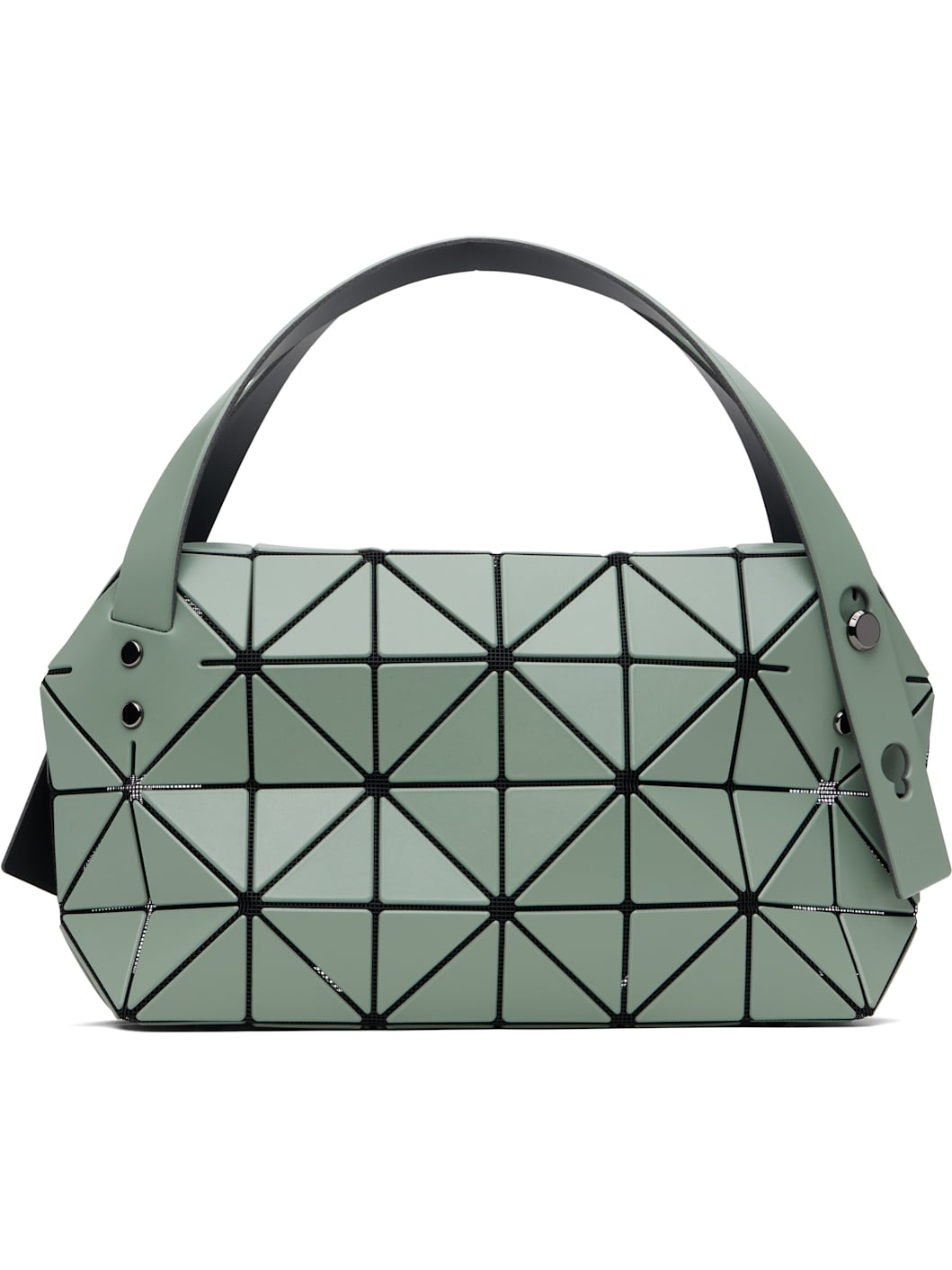 Mesh top handle bag in black. Signature triangular vinyl appliques in green throughout. · Adjustable carry handles · Bumper studs at base · Two-way zip closure · Patch pocket at interior · Logo-engraved gunmetal-tone hardware · H6.5" x W12.5" x D3" Supplier color: Khaki green Textile, synthetic. Made in Japan 252730F048014
