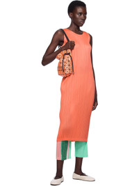 Mesh shoulder bag in black. · Triangular faux-leather appliques in orange throughout · Adjustable drawstring shoulder strap · Open throat · Zip pocket at interior · Patterned textile lining · H9" x W8" x D3.5" Supplier color: Deep orange Textile, synthetic. Made in Japan 252730F048007