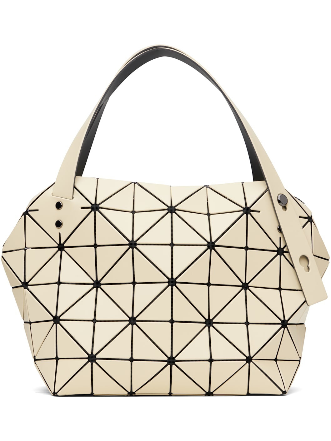 Mesh top handle bag in black. Signature triangular vinyl appliques in yellow throughout. · Adjustable carry handles · Bumper studs at base · Two-way zip closure · Patch pocket at interior · Logo-engraved gunmetal-tone hardware · H9.5" x W15" x D6.5" Supplier color: Cream Polyvinyl chloride, textile. Made in Japan 252730F048026