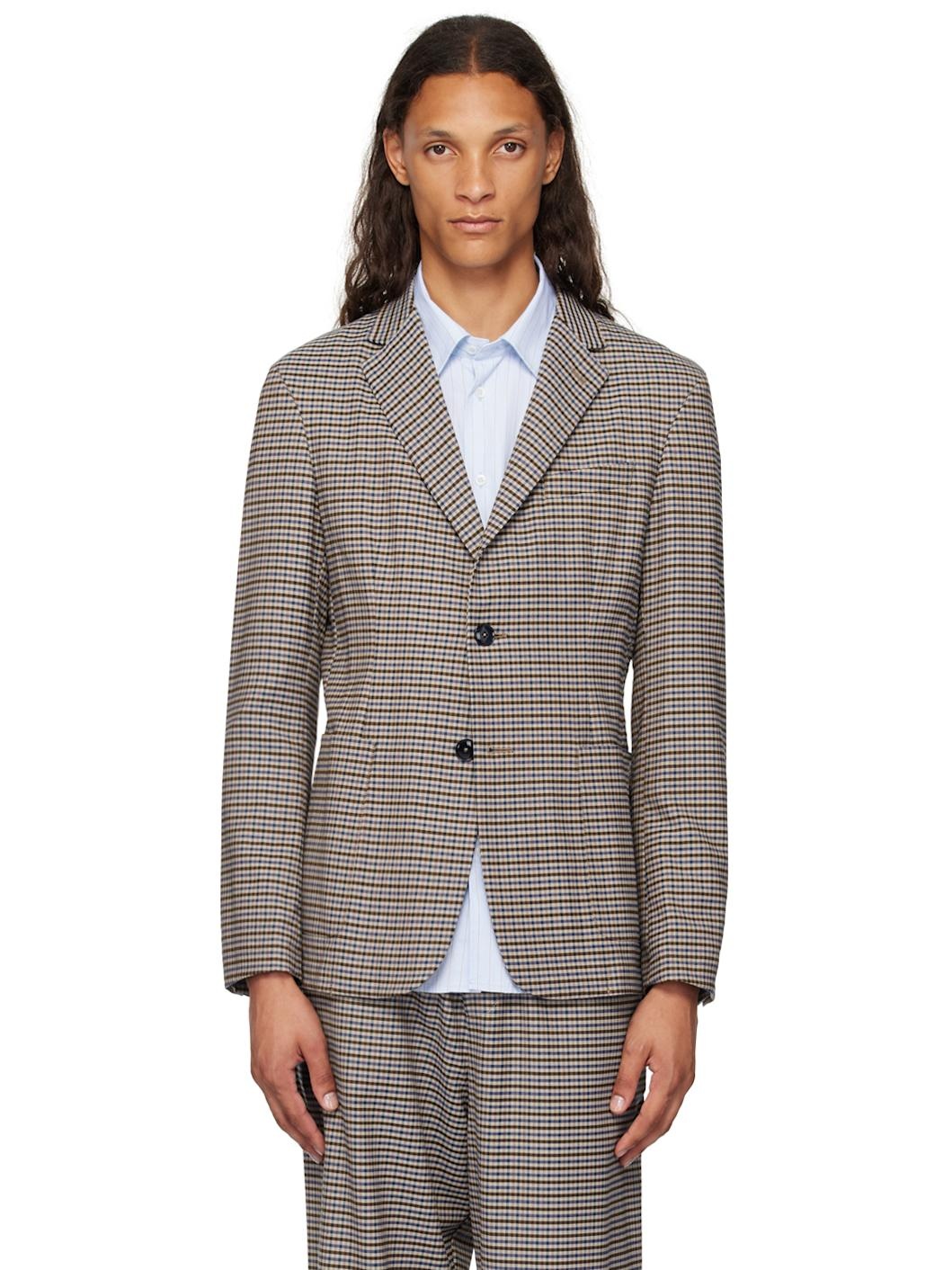 Stretch polyester -and virgin wool-blend Prince of Wales blazer. · Notched lapel · Button closure · Patch pockets · Four-button surgeon cuffs · Twin vents at back hem · Partial logo-woven twill lining Supplier color: Unico Body: 53% polyester, 43% virgin wool, 4% elastane. Lining: 52% nylon, 48% cotton. Made in Italy 242313M195001