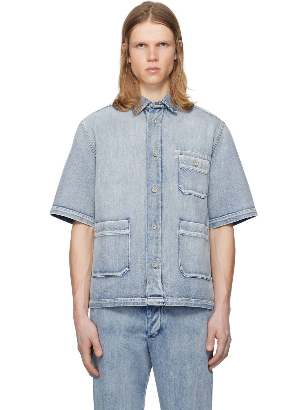 Hand-brushed bleached non-stretch denim shirt. Fading throughout. · Boxy-fit · Spread collar · Button closure · Patch pockets · Central seam at back Supplier color: Mirage 100% cotton. Made in Italy 251313M192014