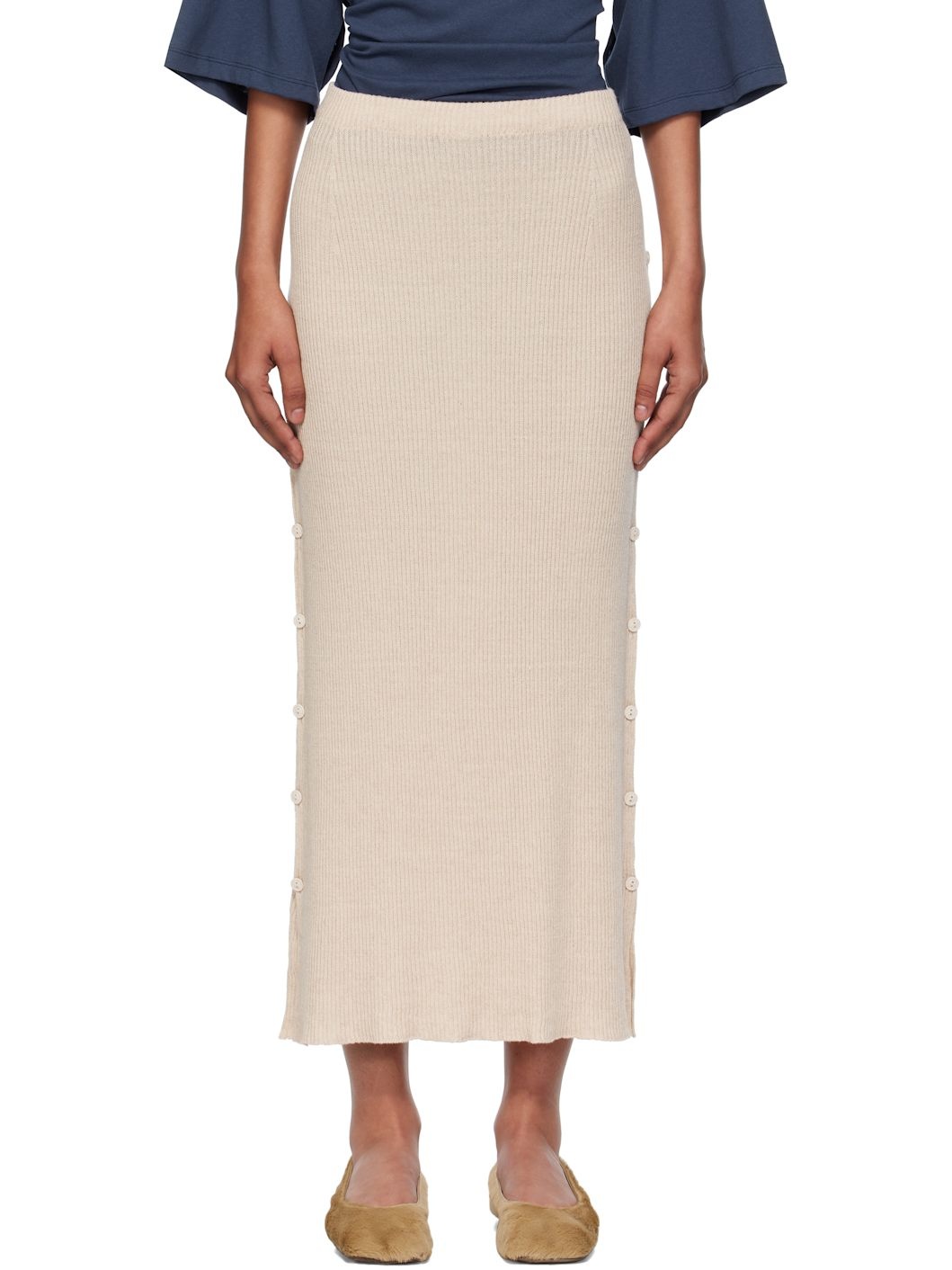 Rib-knit linen- and organic cotton-blend midi skirt. · OEKO-TEX®-certified cotton · Elasticized waistband · Buttoned vent at side seams Supplier color: Lata beige 55% linen, 30% organic cotton, 15% seacell. Made in France 252922F092004