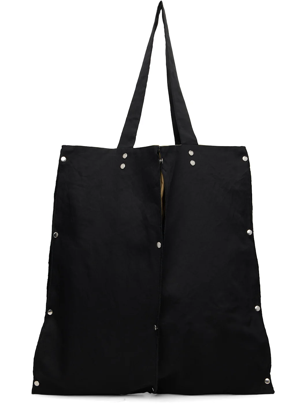 Organic cotton crinkled sateen tote. · Press-studs throughout · Fixed twin shoulder straps · Open throat · Patch pocket at interior · Organic cotton crinkled sateen lining · Silver-tone hardware · H19.5" x W18.5" Supplier color: Black/Khaki 100% organic cotton. Made in Portugal 252922F049001
