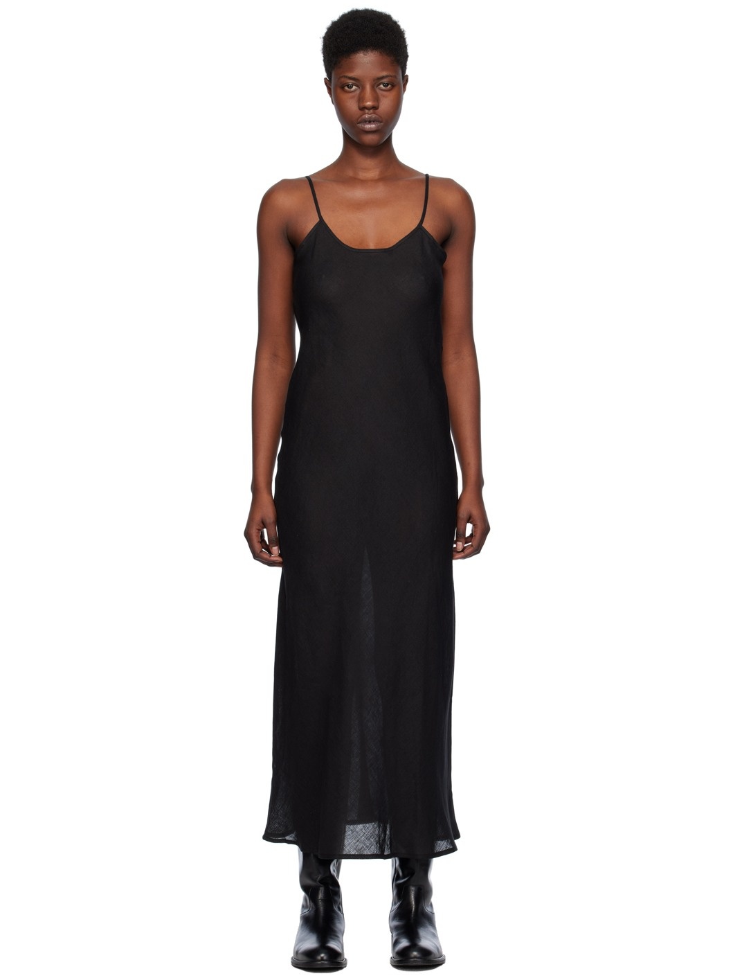 Bias-cut semi-sheer OEKO-TEX®-certified linen voile dress. · Scoop neck · Adjustable spaghetti straps Supplier color: Black 100% linen. Made in Turkey 241922F055009