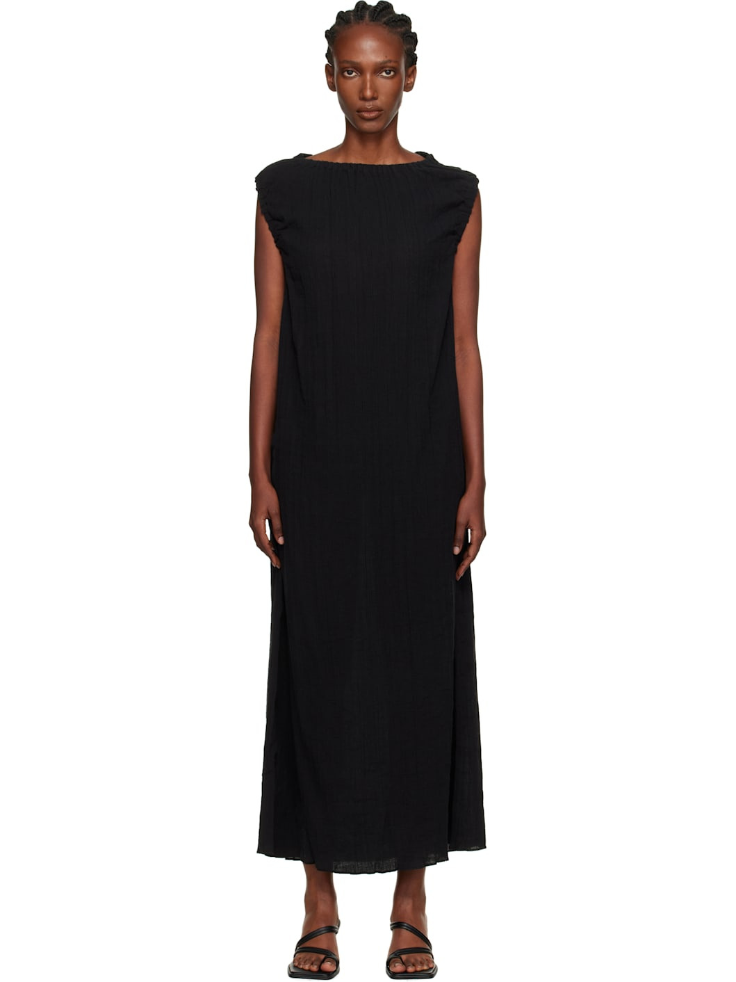 Crinkled linen- and organic cotton-blend hopsack maxi dress. · OEKO-TEX®-certified · Gathering at elasticized boatneck and armscyes Supplier color: Black 74% linen, 26% cotton. Made in Turkey 252922F055002