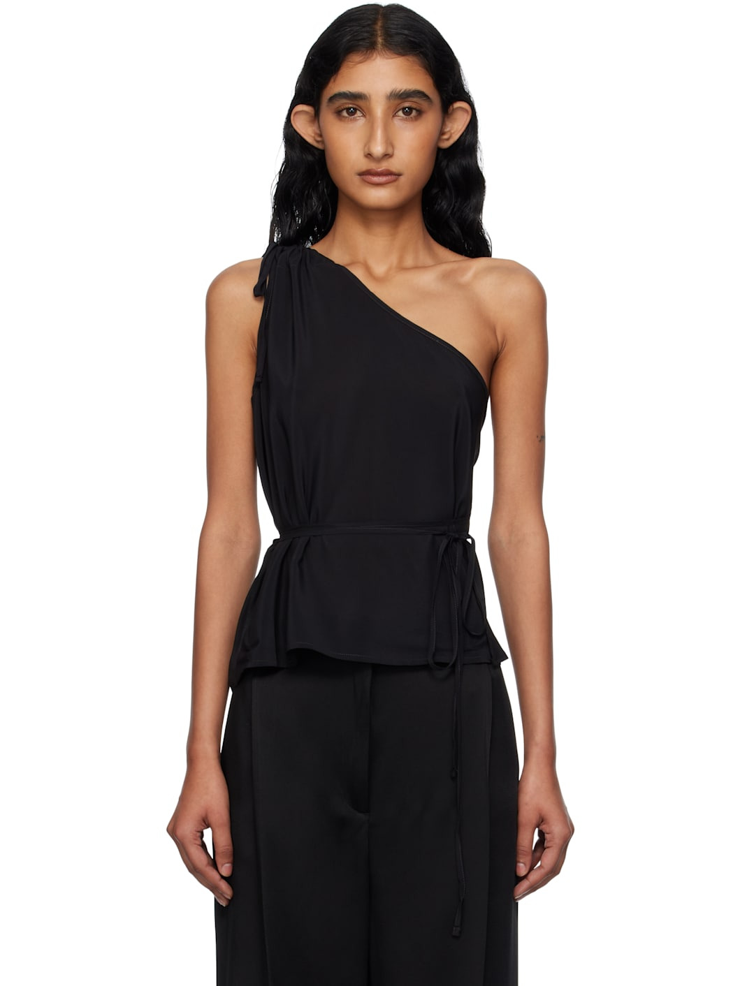 Organic silk crepe camisole. · Certified OEKO-TEX® · Single-shoulder construction converts to halter neck · Self-tie straps at neck and waist Supplier color: Black 100% organic silk. Made in Turkey 252922F111014