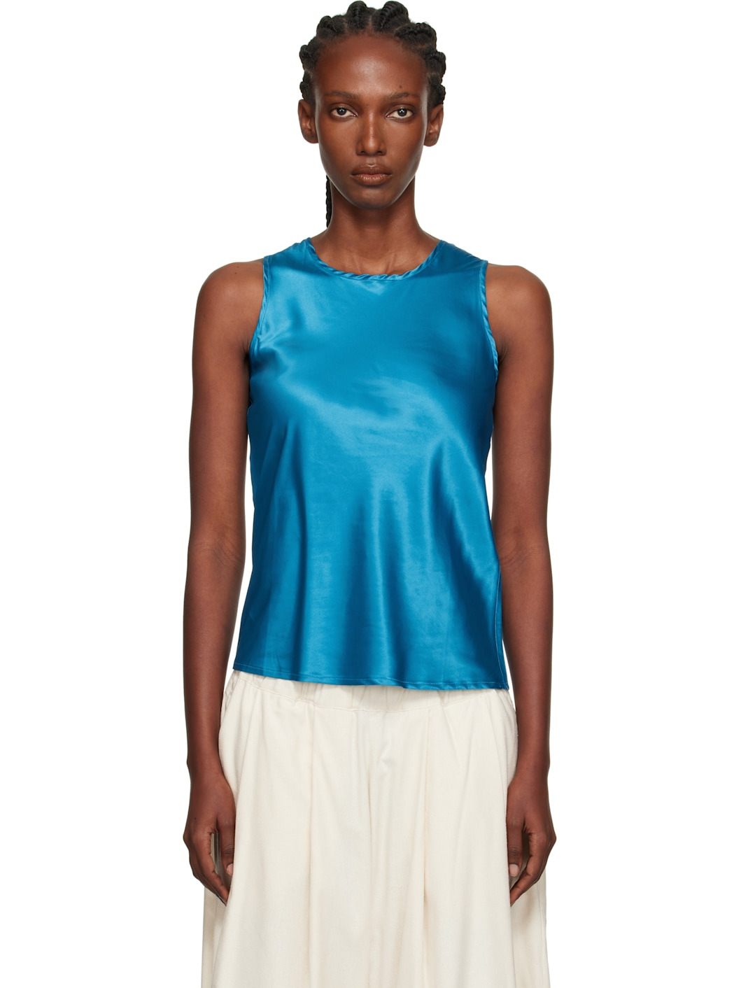 Bias-cut stretch ECOVERO™ viscose satin tank top. · EU Ecolabel-, FSC-, OEKO-TEX®-, and PEFC-certified · Round neck Supplier color: Ora blue 96% ecovero, 4% elastane. Made in Turkey 252922F111022