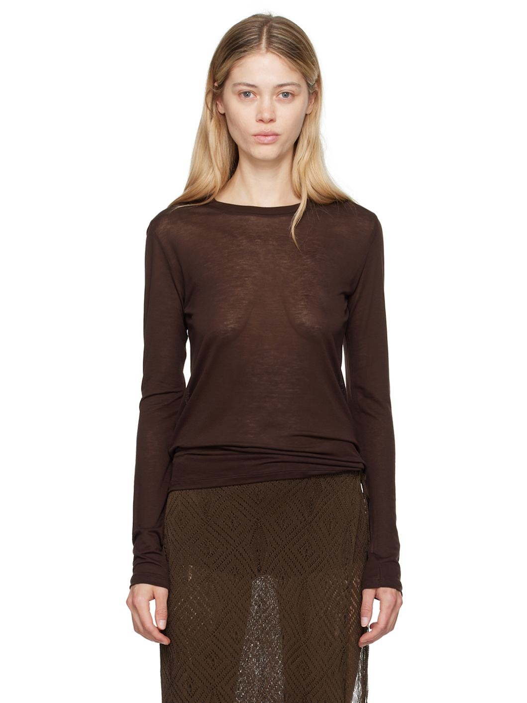 Brown Bamboo Lyocell Long Sleeve T-Shirt