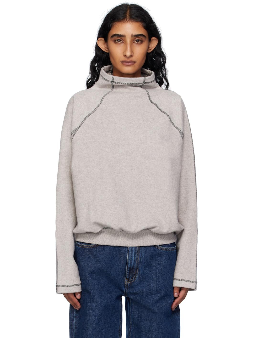 Organic cotton- and recycled cotton-blend fleece turtleneck. · Certified GRS and OEKO-TEX® · Rib-knit hem · Raglan sleeves · Contrast overlock stitching in black Supplier color: Grey melange 50% organic cotton, 50% recycled cotton. Made in Portugal 252922F099001