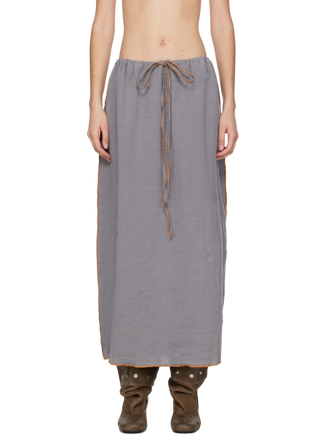 Crinkled linen- and cotton-blend gauze maxi skirt. · OEKO-TEX®-certified · Drawstring at waistband · Exposed side seams · Unlined · Contrast stitching in orange Supplier color: Bayon grey/Yellow 74% linen, 26% cotton. Made in Turkey 251922F093001