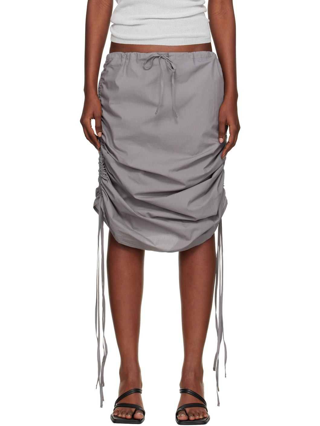 Organic cotton poplin maxi skirt. · GOTS-, OEKO-TEX®-, and OCS 100-certified · Drawstring at waistband · Curved hem · Ruching and self-tie straps at side seams Supplier color: Ziti grey 100% cotton. Made in Turkey 252922F093004
