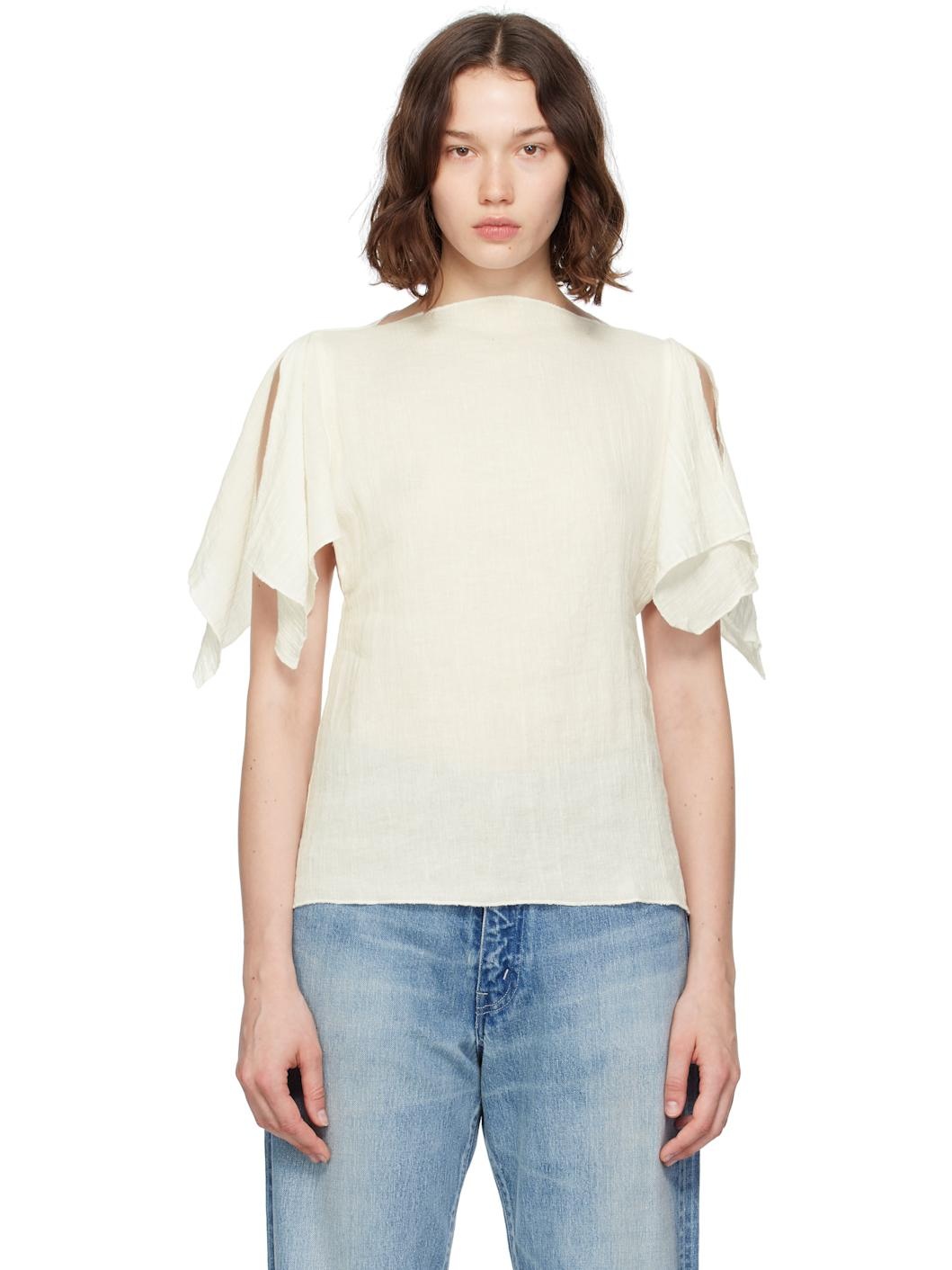 Crinkled linen- and organic cotton-blend gauze top. OEKO-TEX®-certified. · Semi-sheer · Boatneck · Slit at sleeves Supplier color: Undyed 74% linen, 26% organic cotton. Made in Turkey 251922F110066