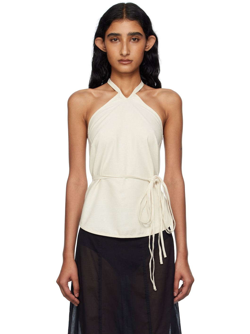 Plain-woven wild silk camisole. · Certified OEKO-TEX® · Self-tie halter strap · Wraparound self-tie fastening at open back Supplier color: Undyed 100% wild silk. Made in Turkey 252922F111034