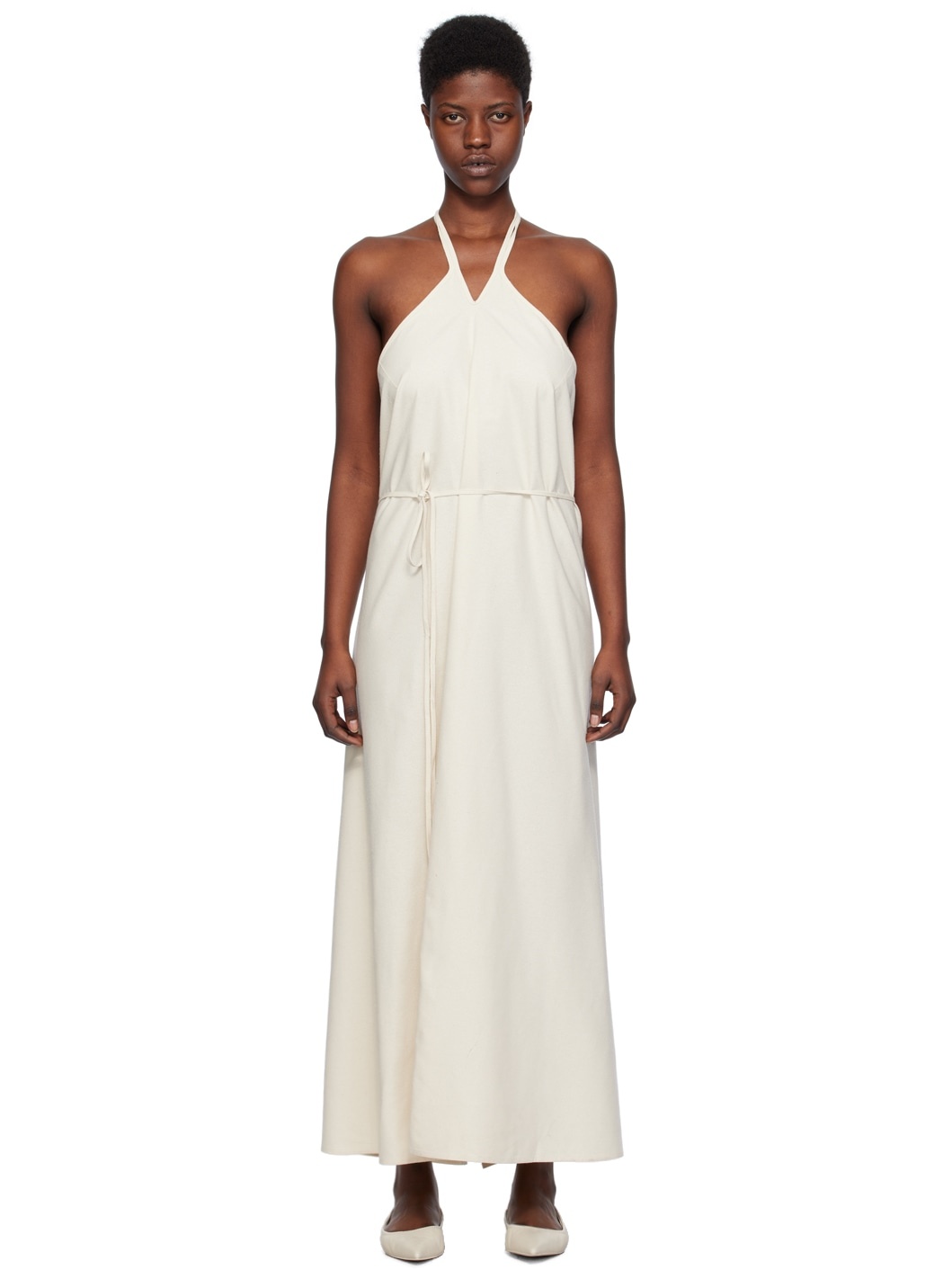 OEKO-TEX®-certified wild silk noil dress. · Wrap construction · Integrated self-tie straps at waist · Self-tie halter strap · Low back Supplier color: Undyed 100% wild silk. Made in Turkey 241922F055002