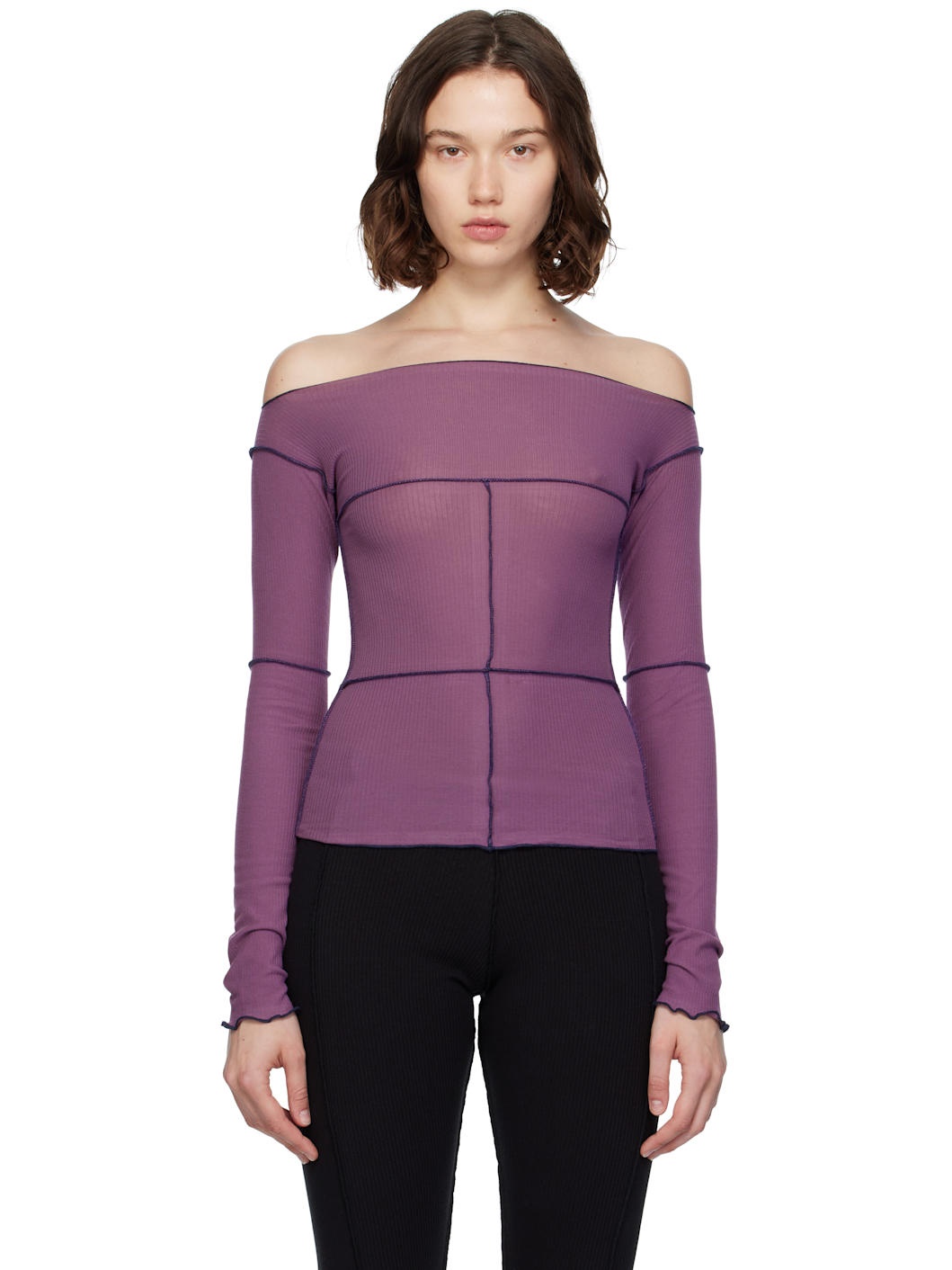 Stretch organic cotton ribbed jersey top. · Certified GOTS, OEKO-TEX®, and OCS 100 · Exposed seams throughout · Paneled construction · Lettuce edge at hem · Fixed halter strap · Open back Supplier color: Venet purple 91% organic cotton, 9% elastane. Made in Portugal 252922F110028